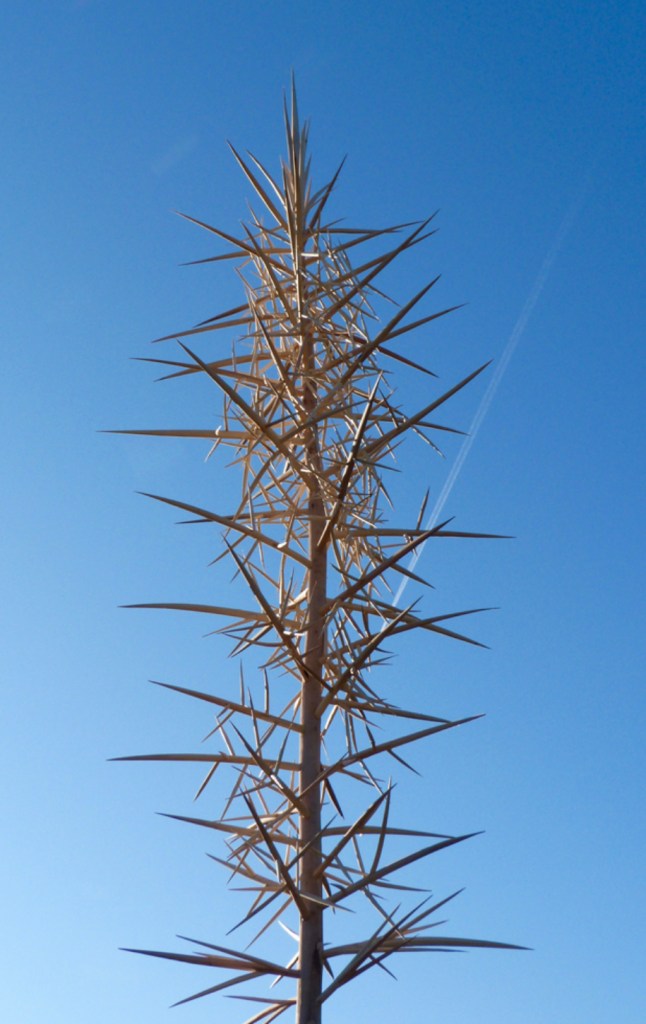 Incontournable dans les landes, ce végétal à la silhouette redoutable défend ardemment ses fleurs dorées. hauteur : 3.30m – chataîgner/saule (2019)